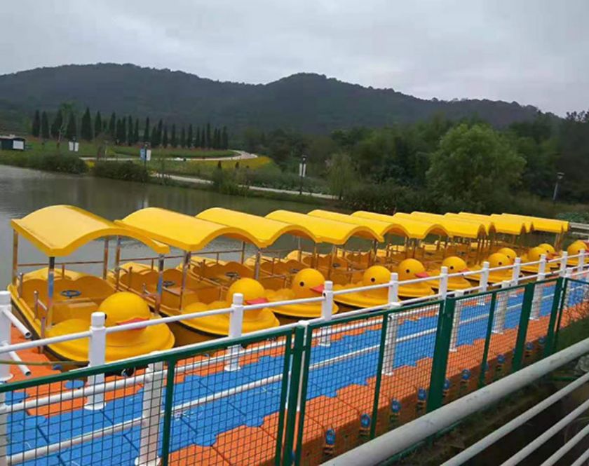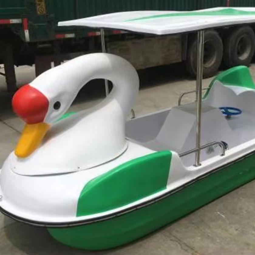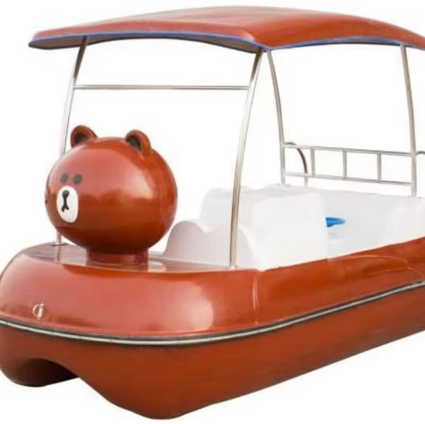 The cute cartoon animal-shaped amusement park pedal boat has a fiberglass hull, which is light and tough, brightly colored, smooth, corrosion-resistant, easy to maintain, and has low resistance. All boats are equipped with anti-skid printing, making you safer and more assured during use. .