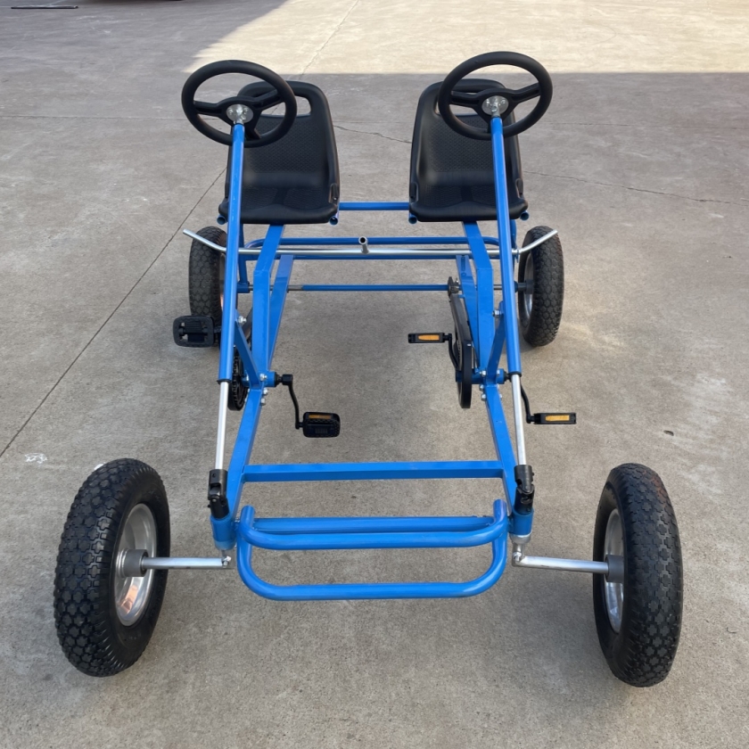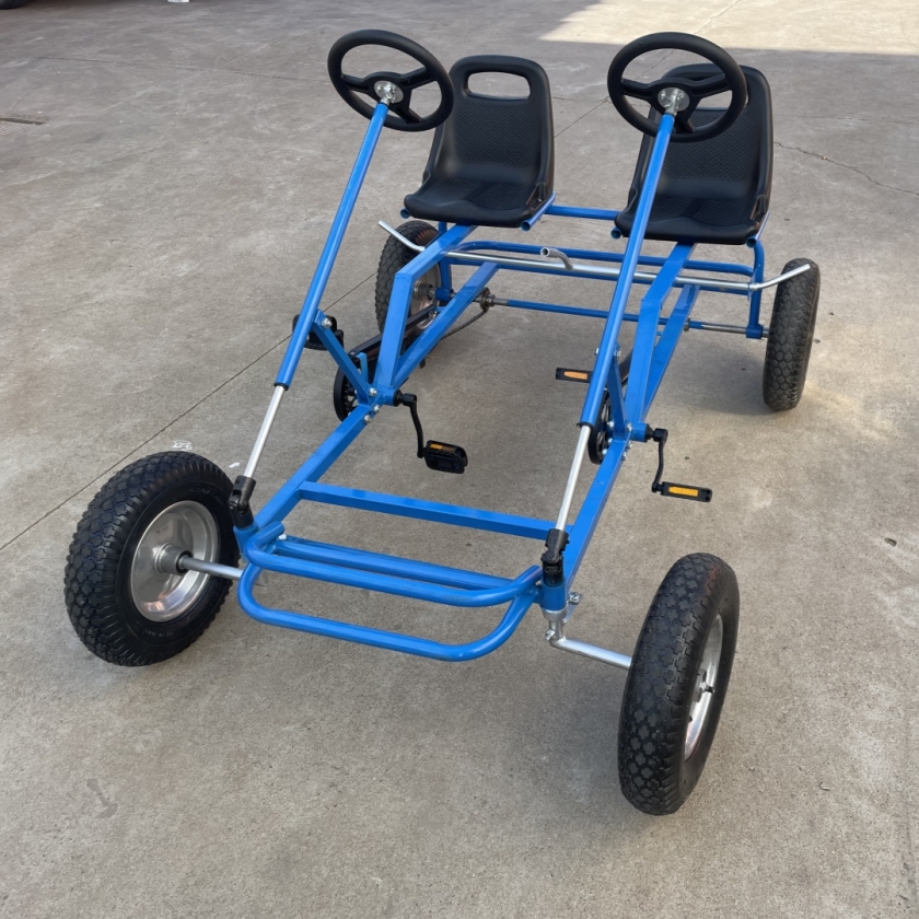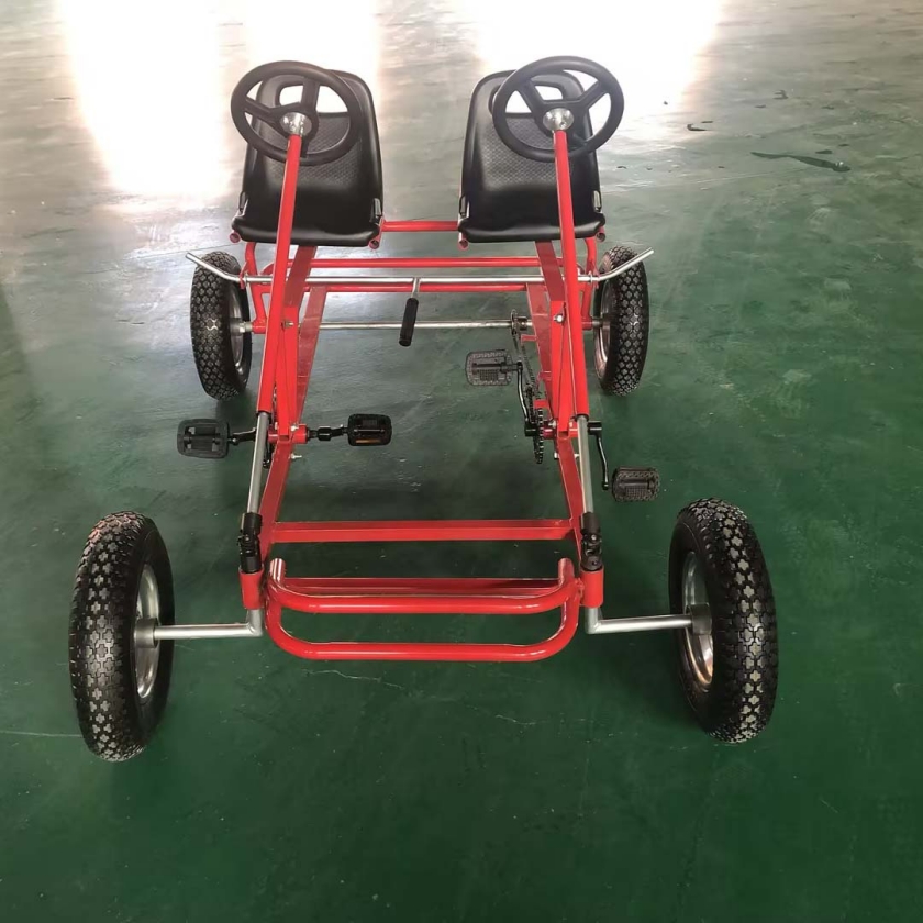 During the driving process of the two-person two-seater kart, passengers can sit side by side in the car and experience the fun of driving together. The design of this kind of kart allows passengers to communicate better, feel the interaction with each other, and enhance their feelings for each other.